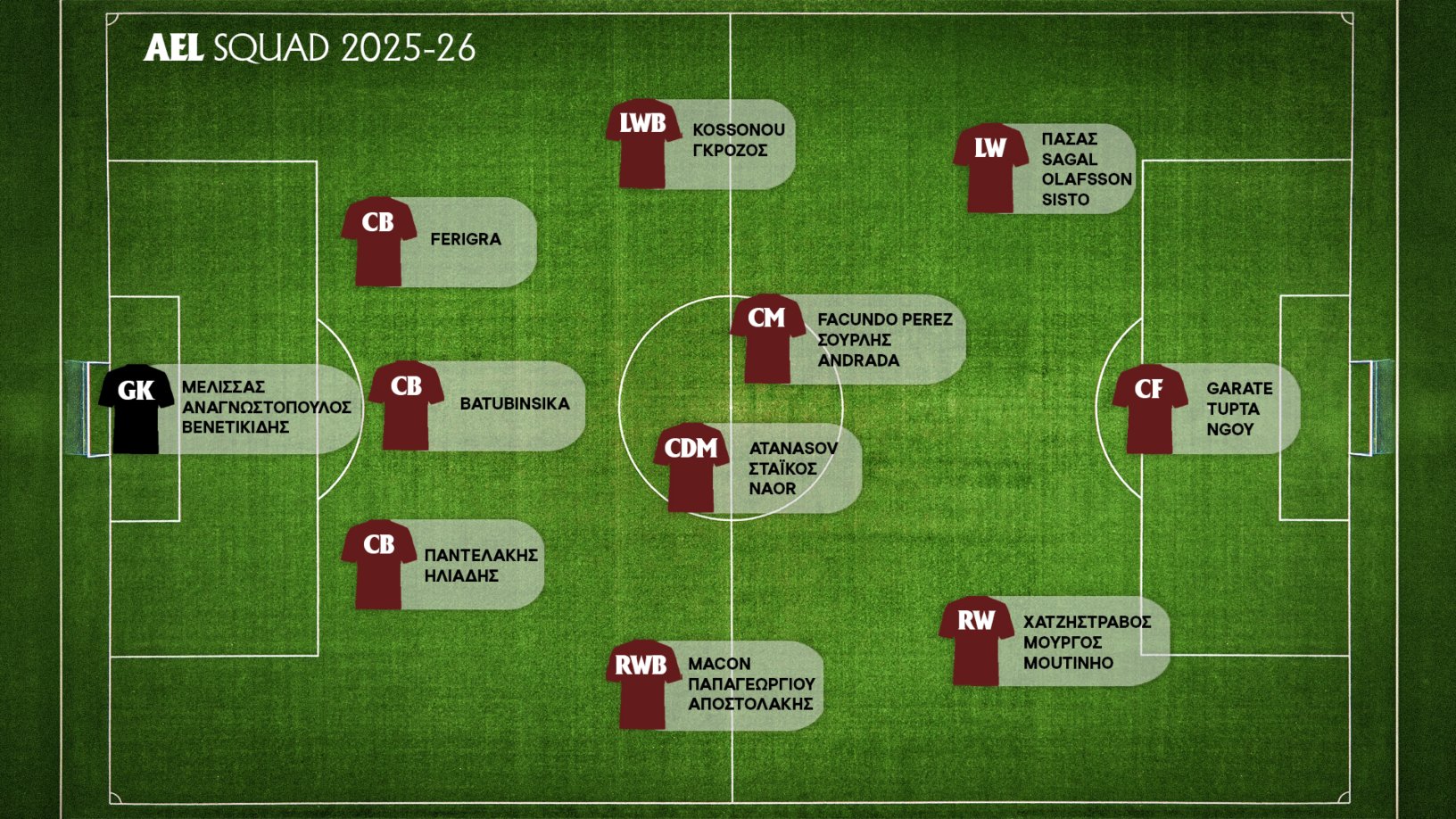 Στην 21μελή αποστολή της ΑΕΛ συμπεριλήφθηκαν οι: Αναγνωστόπουλος, Βενετικίδης, Μασόν, Αποστολάκης, Φερίγκρα, Ηλιάδης, Παντελάκης, Μπατουμπινσικά, Όλαφσον, Κοσονού, Σίστο, Ατανάσοφ, Ναόρ, Πέρες, Χατζηστραβός, Σαγκάλ, Τούπτα, Μούργος, Πασάς, Γκαράτε, Ενγκόι.