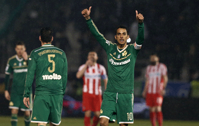 Panathinaikos-Olympiacos 2-1 on matchday 25 of the Super League OPAP 2014/15. Panathinaikos achieved his sixth consecutive victory for the championship after a hard-fought 2-1 against Olympiacos in “Apostolos Nikolaidis” ground. The “Greens” went ahead 2-0 but the “reds” managed to score at the seventh minute (+7′) of the extra time at the second half of the match.