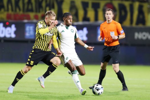Panathinaikos maintained total control throughout the first half and created two more good chances for a second goal — with a header by Swiderski (18’) and a shot by Tete (38’). In the only moment Aris threatened, with a shot from Kangwa in the 39th minute, Dragowski made a spectacular save.