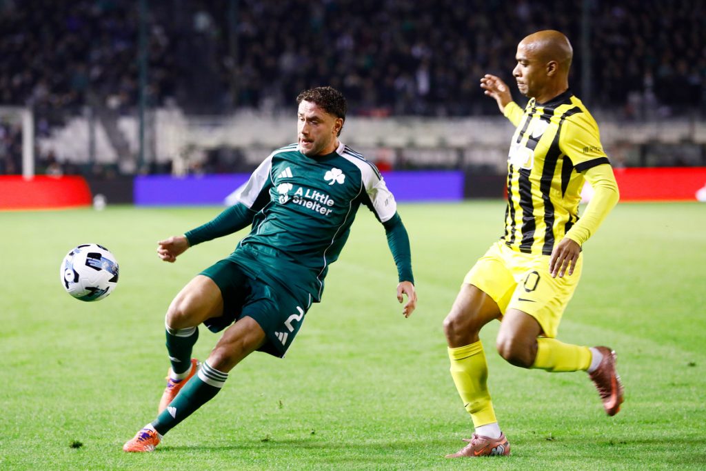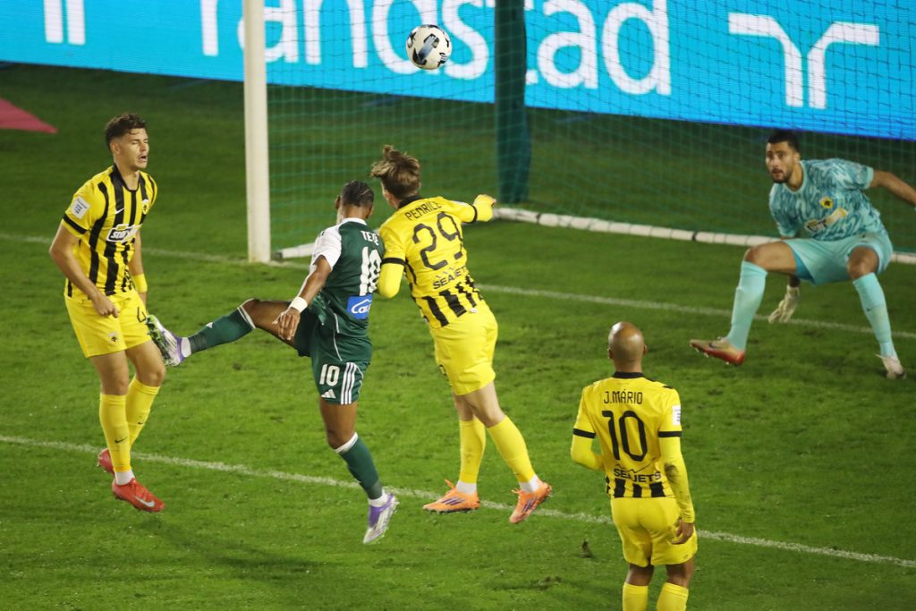 The derby started with great intensity, passion and duels. The Greens created the first threatening moment in AEK’s box in the 12th minute, when Tete made a cross into the area and Zaroury shot immediately, but the ball deflected off Relvas’ leg and was cleared.