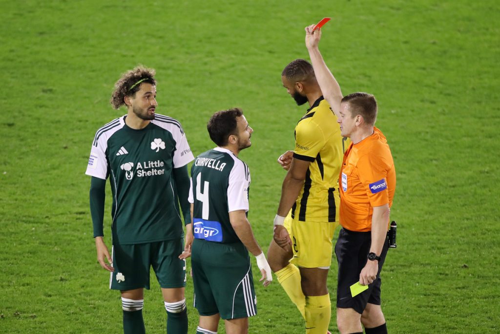 However, the numerical balance changed quickly, as did the Spaniard’s game plan, since Toumba was sent off with a second yellow card in the 64th minute. Despite the disadvantage, the Greens reacted, kept control of the game and reduced the score in the 71st minute with a header by Tete after a cross from Zaroury.