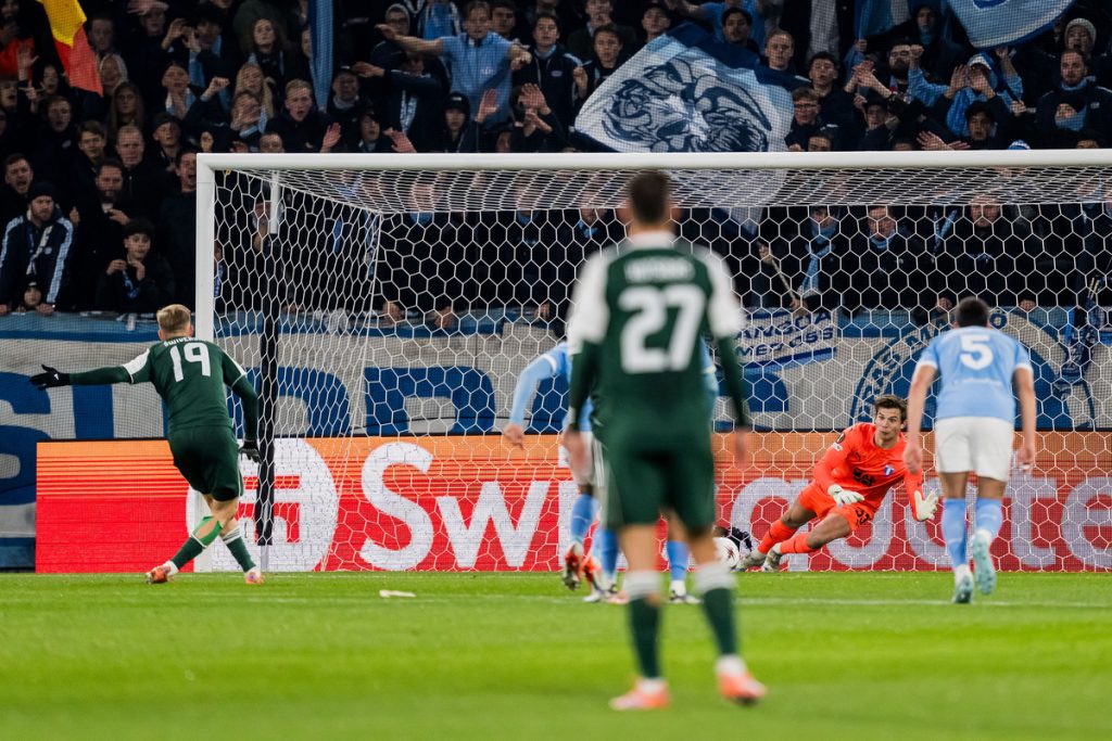 Πριν από τη συμπλήρωση του 20λεπτου, ο Παναθηναϊκός άγγιξε το γκολ. Οι παίκτες του Ράφα Μπενίτεθ πίεσαν ψηλά, ο Τσιριβέγια έκλεψε την μπάλα στα όρια της μεγάλης περιοχής της Μάλμε και ο Σφιντέρσκι, γκρεμίστηκε εντός περιοχής από τον Μπουσουλάτζιτς. Το πέναλτι καταλογίστηκε, ο Πολωνός στράικερ ανέλαβε την εκτέλεση στο 20’ αλλά ο Έλμποργκ έπεσε στην αριστερή πλευρά και μπλόκαρε την μπάλα.