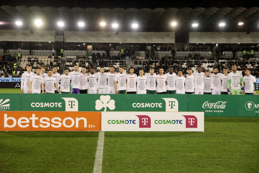 Κλίμα συγκίνησης στη Λεωφόρο με τους ποδοσφαιριστές των δύο ομάδων και τους διαιτητές να εισέρχονται στο γήπεδο με μπλουζάκια που αναγράφουν τα ονόματα των αδικοχαμένων φιλάθλων του ΠΑΟΚ. Μια πρωτοβουλία της ΠΑΕ Παναθηναϊκός.