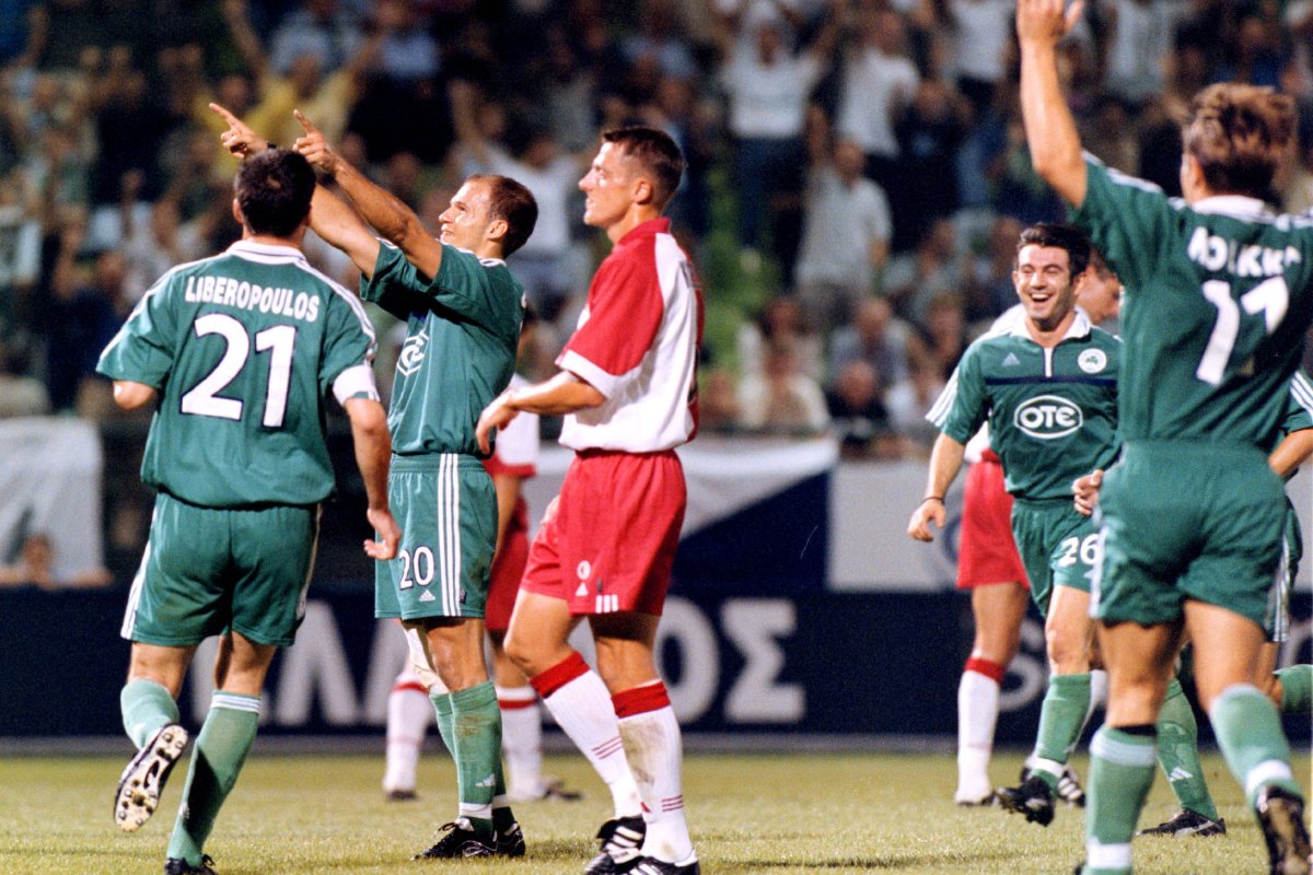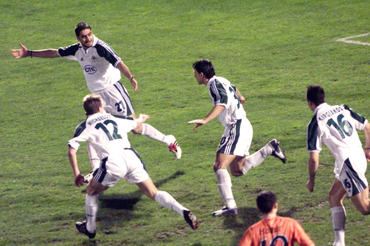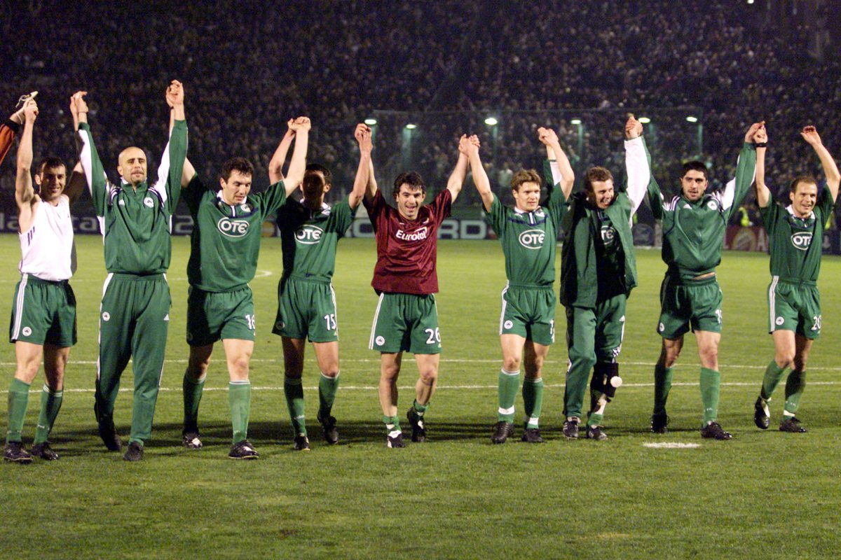Ο Παναθηναϊκός διένυε μια «χρυσή» τριετία στα Κύπελλα Ευρώπης με μεγάλες ευρωπαϊκές πορείες και το καλοκαίρι του 2001 συναντήθηκε για πρώτη φορά με τη Σλάβια Πράγας στον γ’ προκριματικό γύρο του Champions League. Οι Πράσινοι του Γιάννη Κυράστα πέρασαν νικηφόρα από την Πράγα με 2-1 και επέστρεψαν στη Λεωφόρο στις 22/8 για να σφραγίσουν την πρόκριση στη φάση των ομίλων. Μια εύστοχη εκτέλεση πέναλτι του Άγγελου Μπασινά διαμόρφωσε το τελικό 1-0 που ήταν αρκετό για να δώσει στο Τριφύλλι την πρόκριση στην επόμενη φάση, όπου αντιμετώπισε τις Άρσεναλ, Σάλκε και Μαγιόρκα.