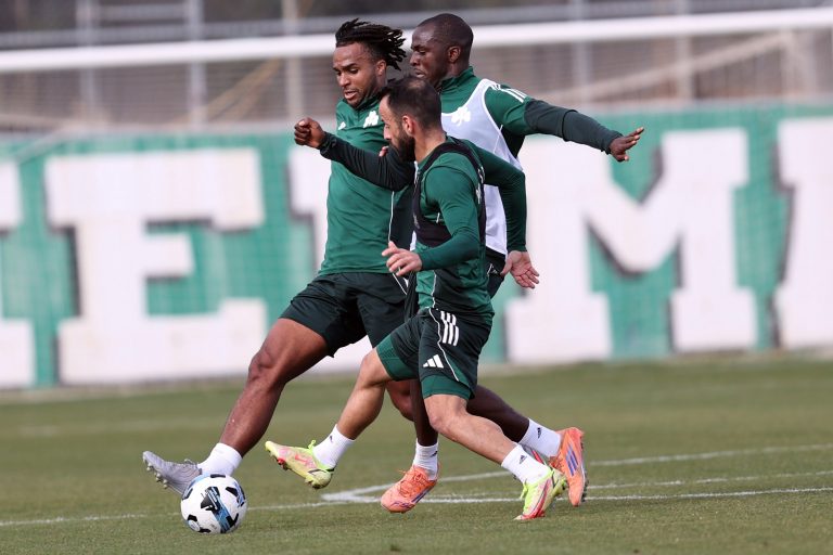 Το πρόγραμμα των «πράσινων» περιλάμβανε στην αρχή ζέσταμα, στη συνέχεια ασκήσεις κυκλοφορίας της μπάλας και στο τέλος εξάσκηση στα τελειώματα.