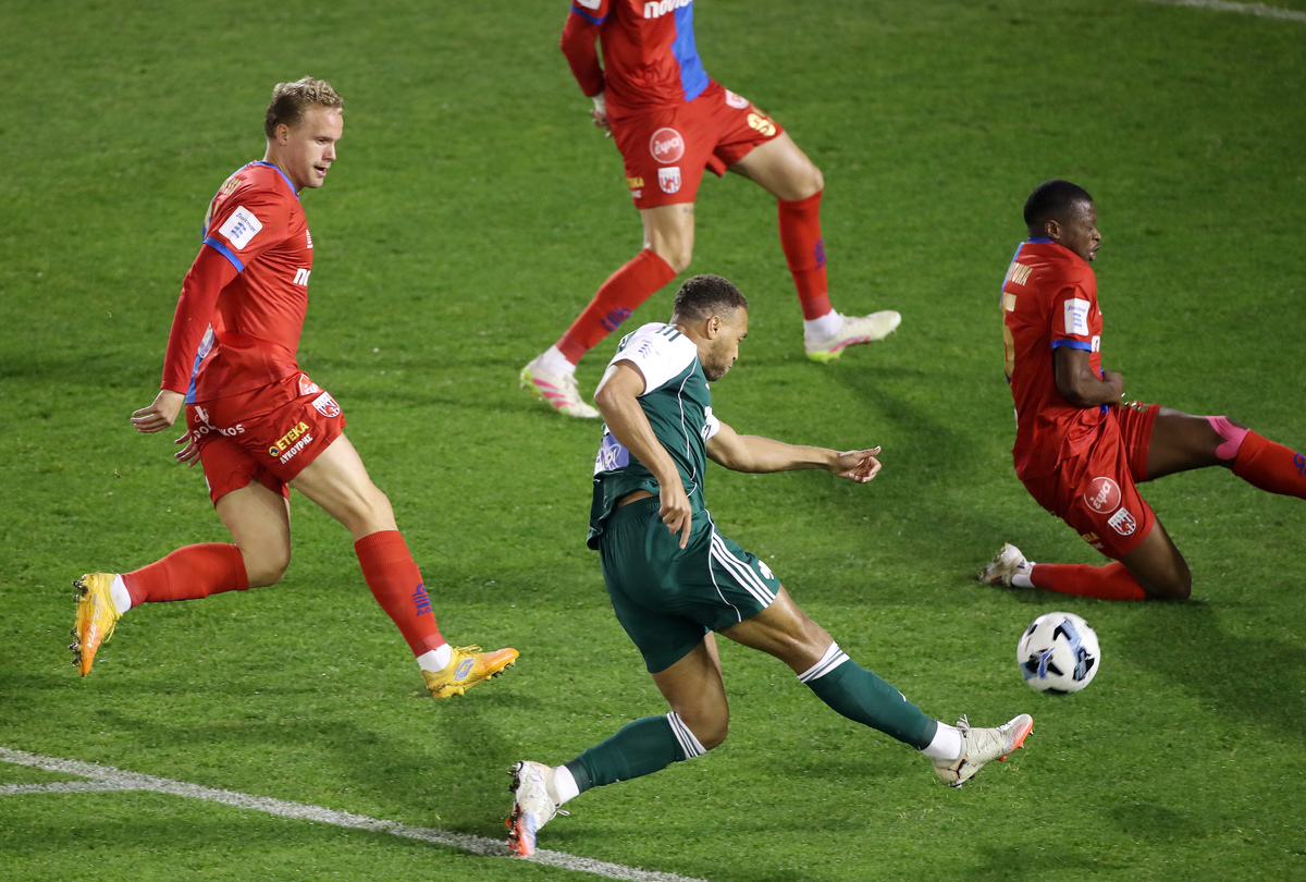 Οι Πράσινοι μπήκαν με αποφασιστικότητα στο γήπεδο και πολύ γρήγορα έδειξαν τις διαθέσεις τους καθώς άνοιξαν το σκορ μόλις στο 5’. Η πίεση ψηλά απέδωσε καρπούς, η μπάλα κατέληξε στα πόδια του Ντέσερς, ο οποίος κινήθηκε παράλληλα με τη μεγάλη περιοχή και εξαπέλυσε ένα αιφνιδιαστικό δυνατό σουτ, που άφησε άναυδο τον Σιαμπάνη γράφοντας το 1-0.