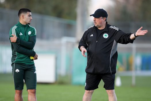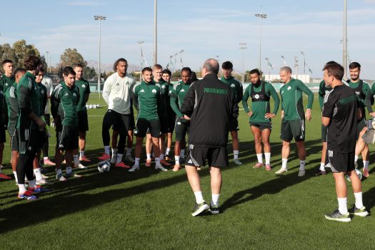 Στην προπόνηση οι Πράσινοι χωρίστηκαν σε δύο γκρουπ. Όσοι βρέθηκαν στο αρχικό σχήμα του αγώνα κόντρα στη Φέγενορντ έκαναν αποθεραπεία. Οι υπόλοιποι ξεκίνησαν προθέρμανση και στη συνέχεια ακολούθησαν ασκήσεις τακτικής, ενώ ολοκλήρωσαν με παιχνίδι στο μισό γήπεδο. Με την ομάδα προπονήθηκε ο Σάντσες. Αντίθετα ατομικό ακολούθησε ο Πελίστρι, ενώ σε θεραπεία υποβλήθηκαν οι Μπακασέτας, Ντέσερς, Μπόκος.